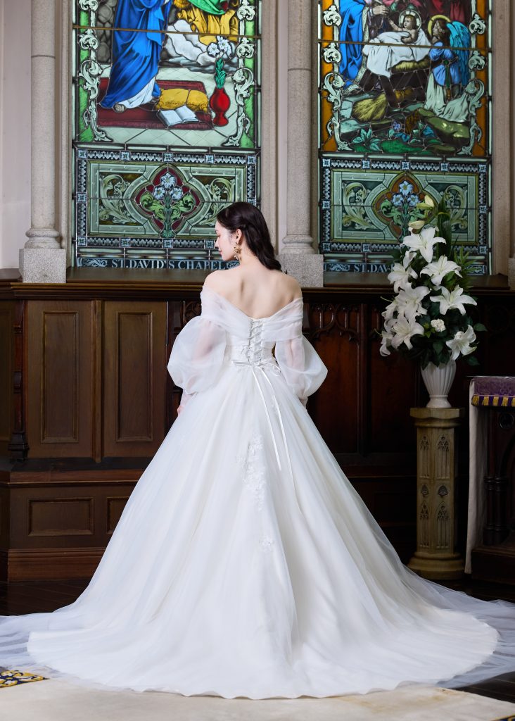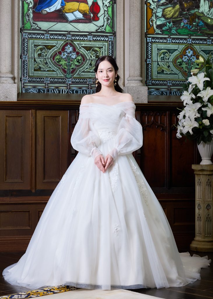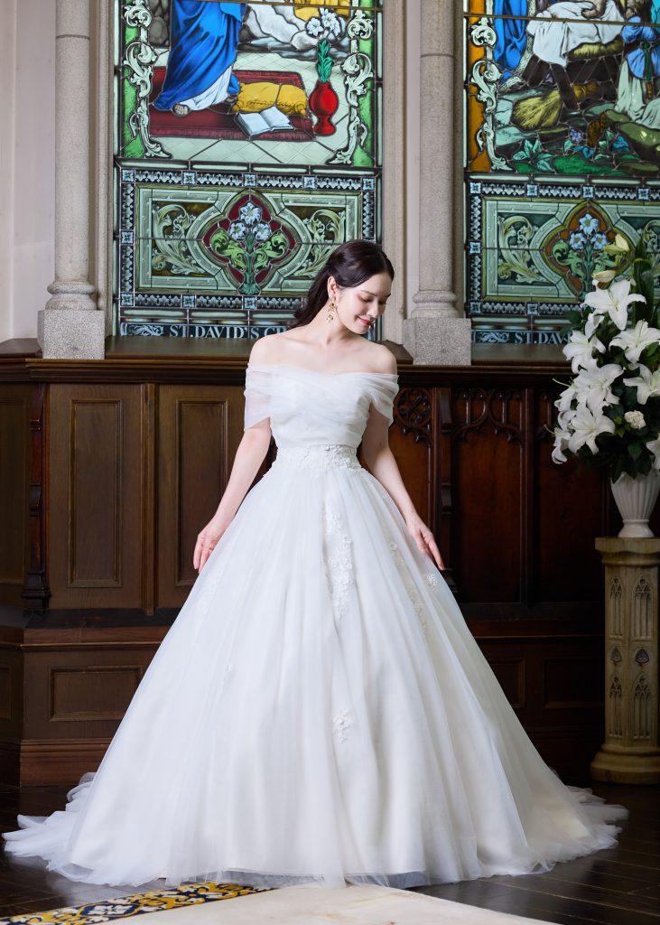ビシュー刺繍を施し華やかさを柔らかさを兼ね揃えたドレス。