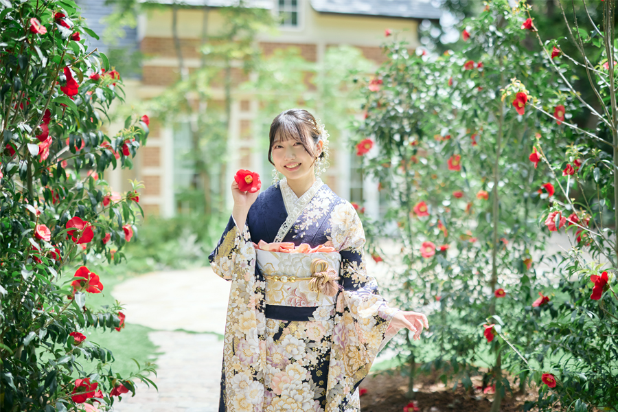 大聖堂やヨーロピアンガーデンに映える振袖コーディネート